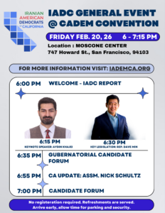 Iranian-American Democrats of California (IADC) is a 527 organization (public benefit) registered in California. IADC is dedicated to engaging, educating and empowering our community. We endorse legislation and Iranian-American Democrats and allies running for office that reflect our values.